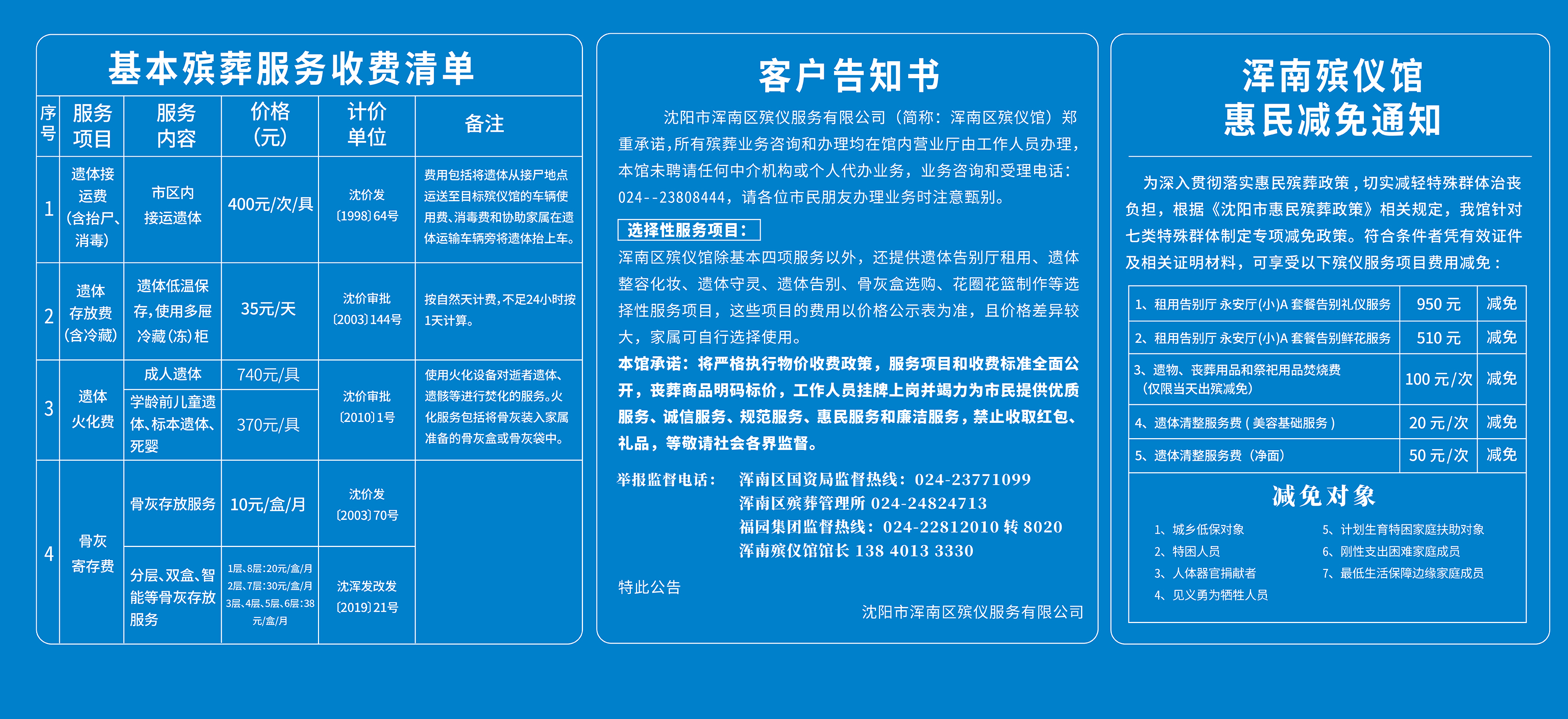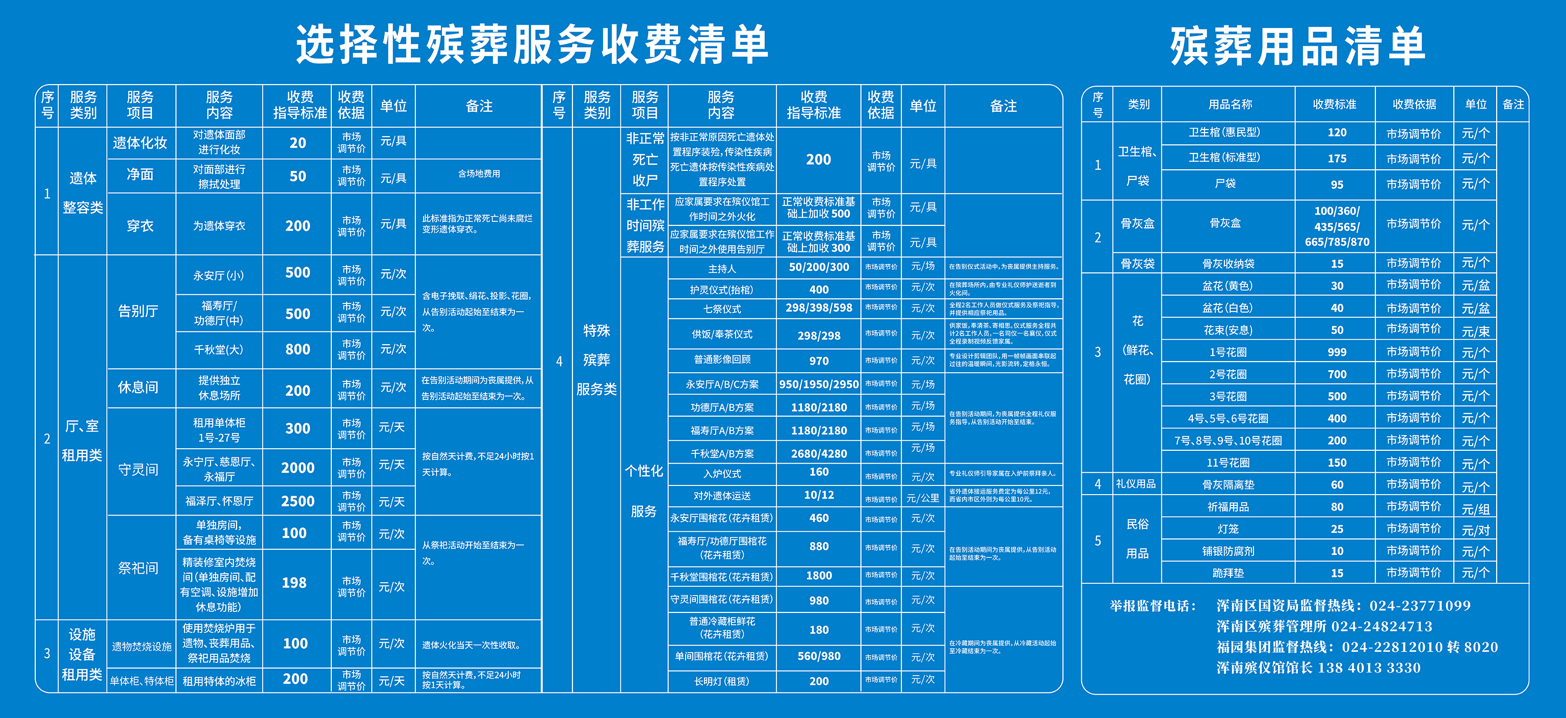 沈阳市福园集团可选择服务项目价格公示表